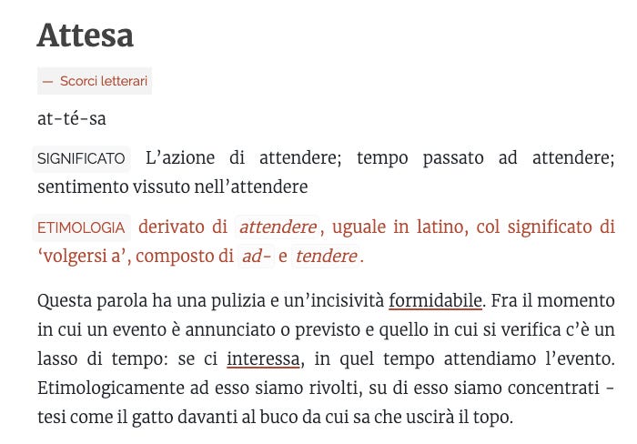 Questa newsletter torna dopo qualche mese di inerzia. Non è certo la prima pausa che mi prendo da questo spazio, né dall’atto dello scrivere, più in generale. La prima volta, avevo appena deciso di voler insegnare; la seconda volta, era un periodo intenso tra lavoro, master e corsi di formazione. E questa volta? Questa volta aspetto un bambino. O forse più che aspettarlo, lo attendo1. Sto costruendo attivamente una mia forma di attesa in questi mesi, che mi ha chiesto silenzio e non parole.